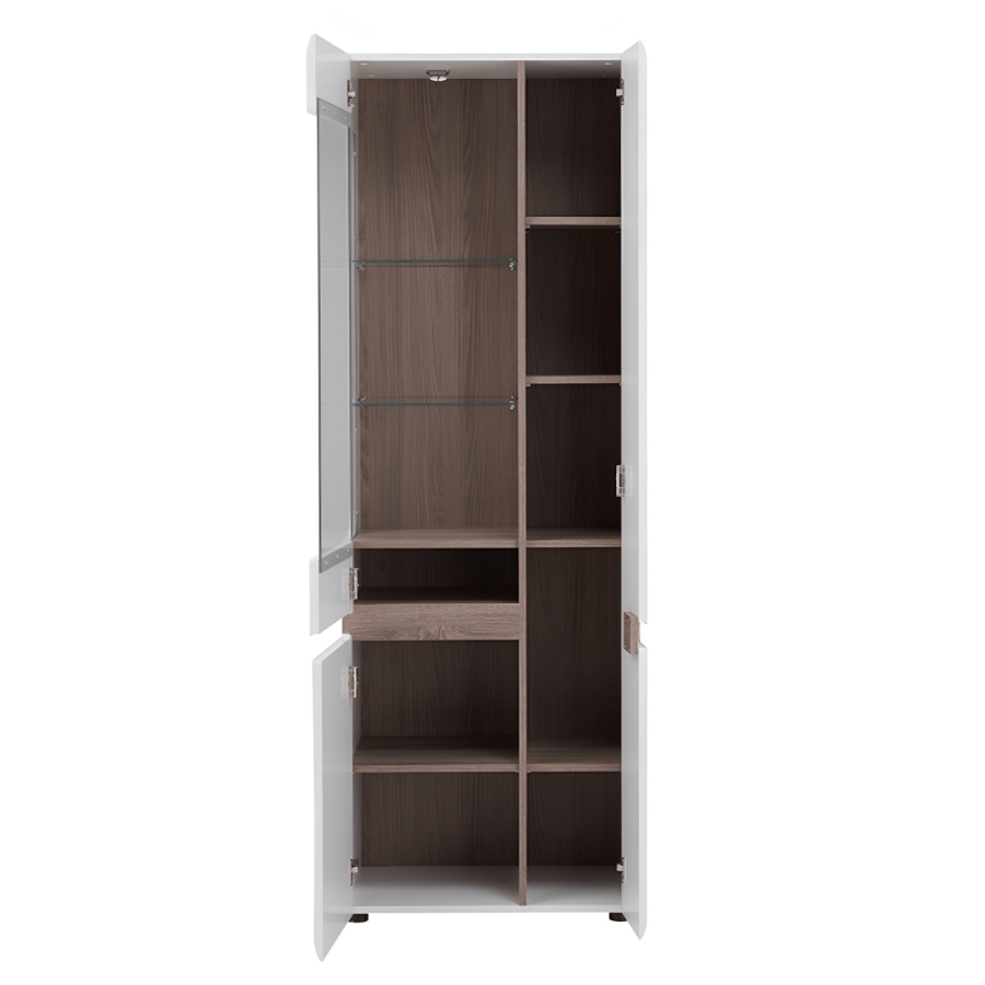 Vitrin, fehér extra magas fényű HG/trufla sonoma tölgy, LYNATET 01