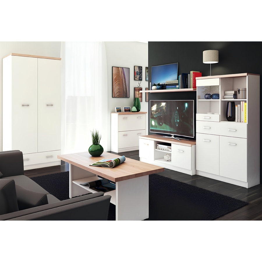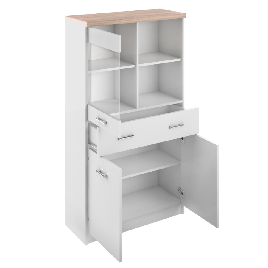 Vitrines szekrény 2D1W1S/80, fehér/tölgy sonoma, TOPTY Typ 02