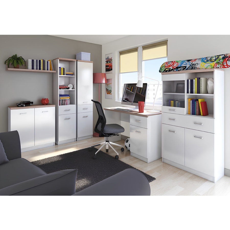 A modern elemes rendszer alkalmas az irodába, dolgozószobába, nappaliba vagy az előszobába.