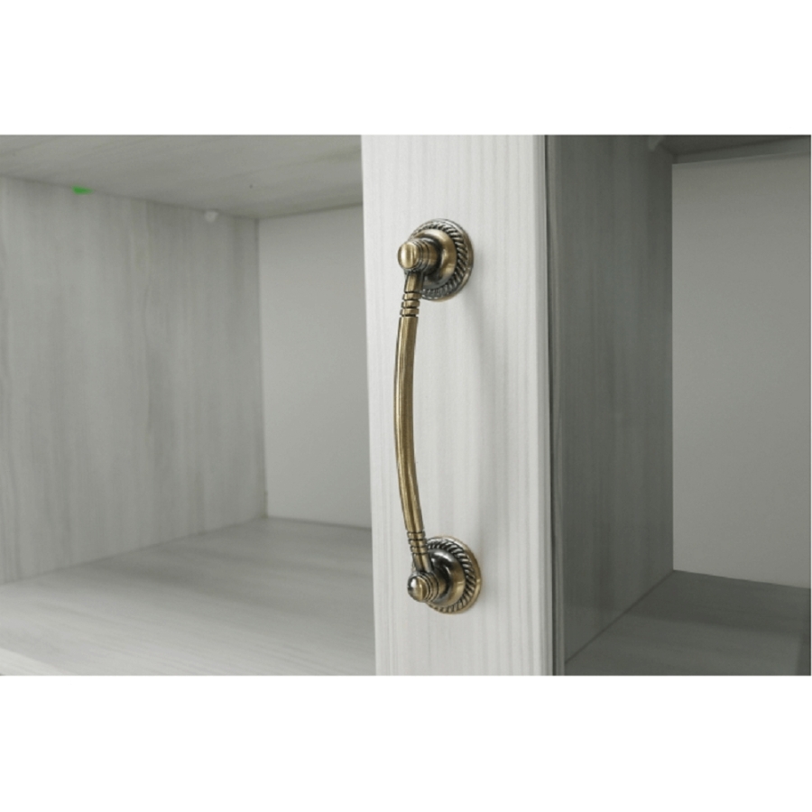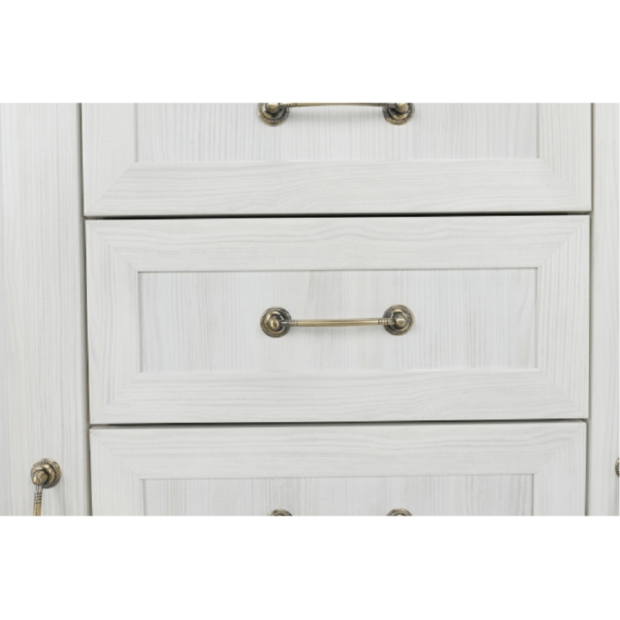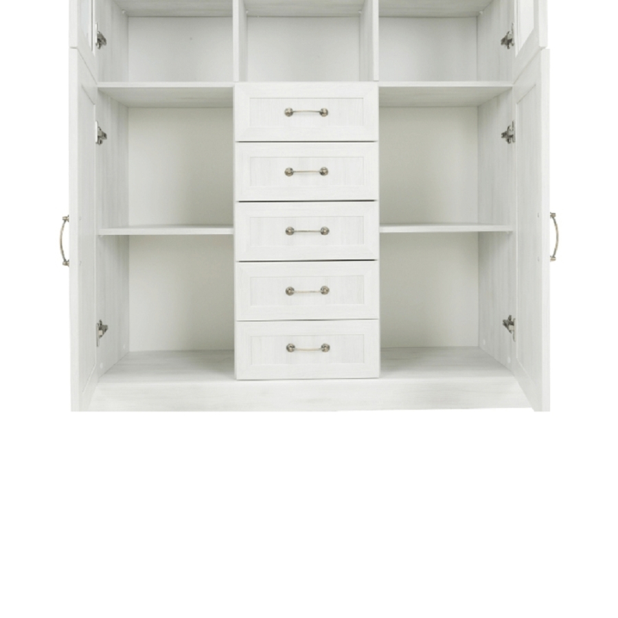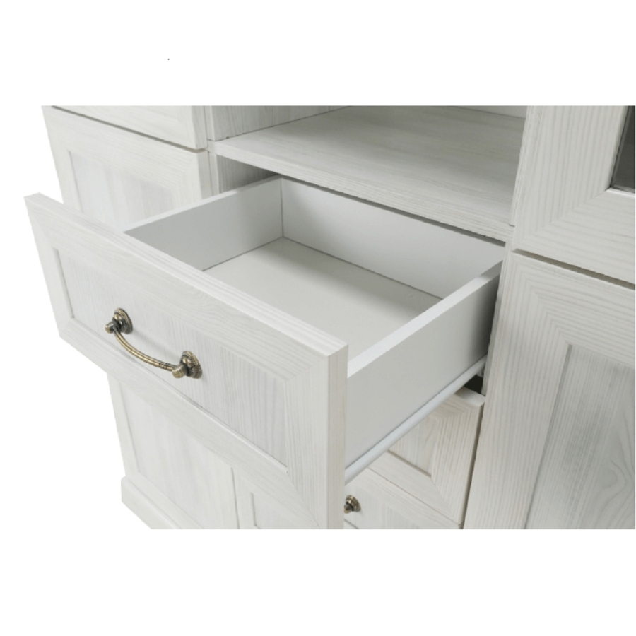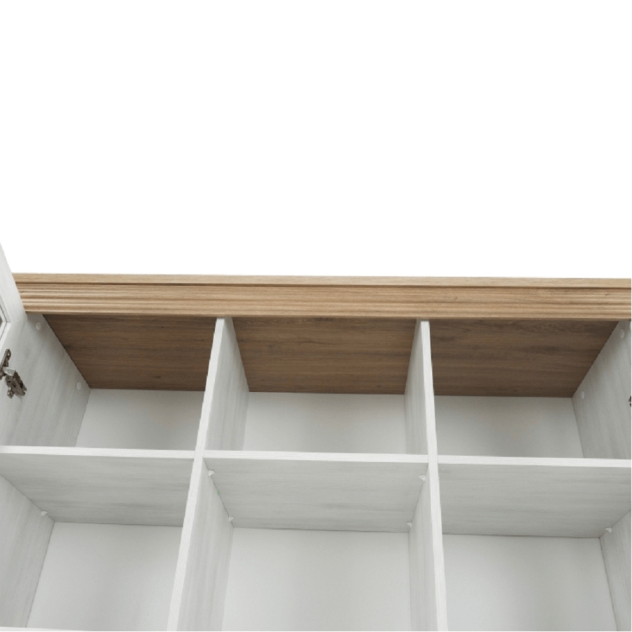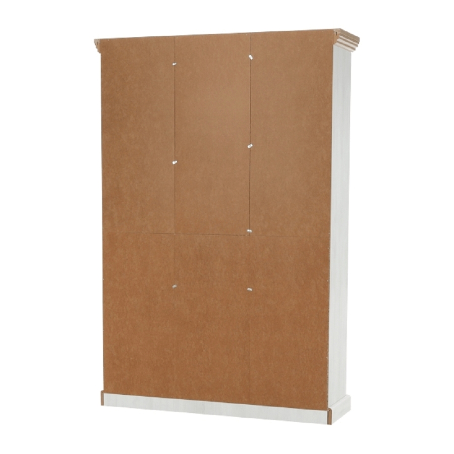 Vitrinszekrény W2D, négy szekrény, öt fiók, nyitott rakodótér polcokkal az elegáns provence-i stílusú ROYAL elemes bútorcsaládból Ideális a nappaliba vagy a hálószobába. Anyag: váz laminált DTD + díszlécek, fém fogantyúk Színváltozat: északi fenyő vad tölggyel kombinálva Méretek (SzéxMéxMa): 127x39x187 cm Váz vastagsága: 15 mm Felsőlap vastagsága: 22 mm Szállítás: lapraszerelten