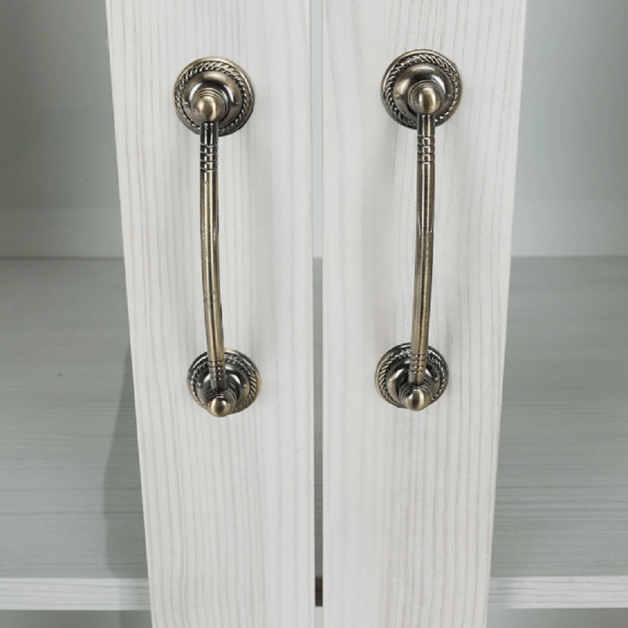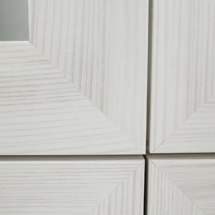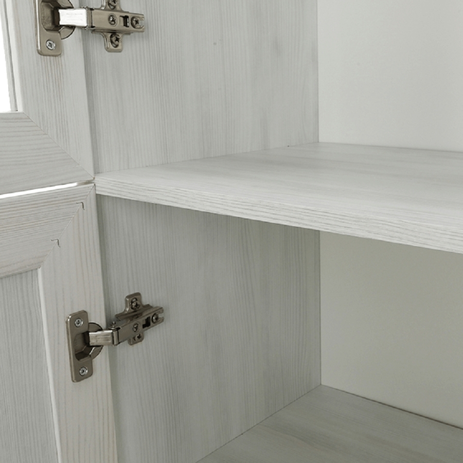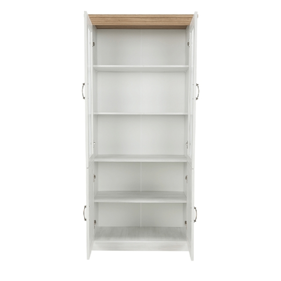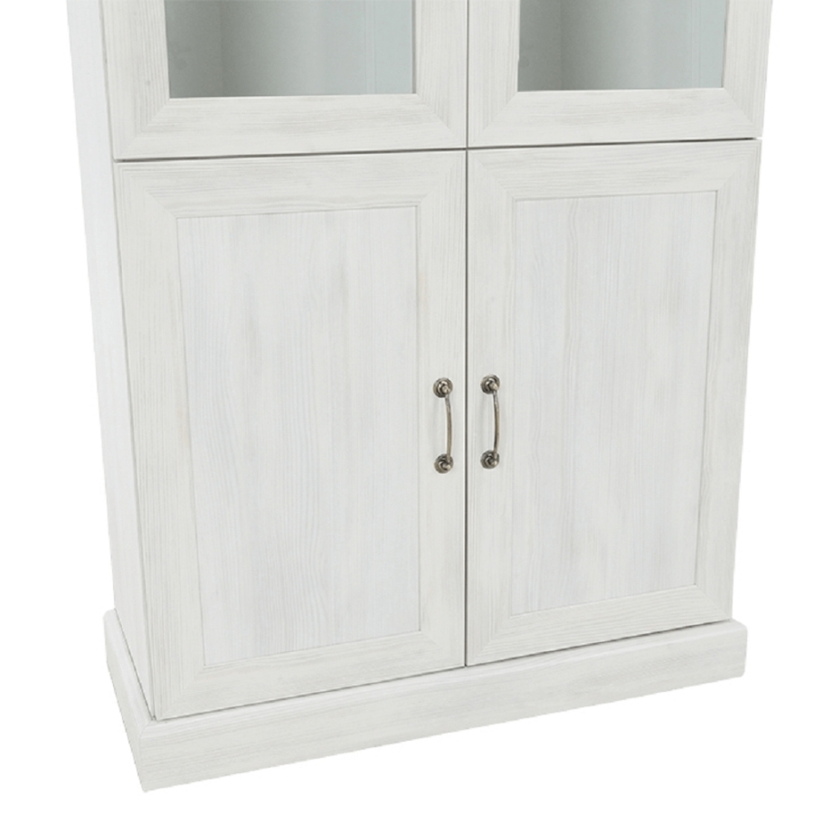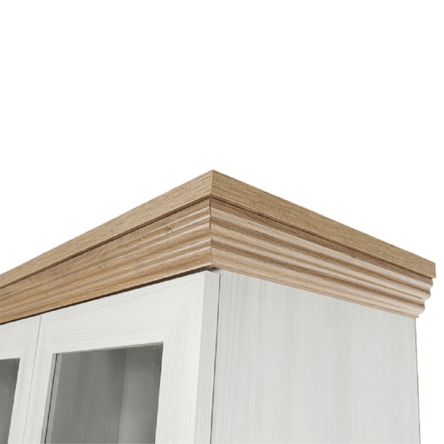 Vitrinszekrény W4D, négyajtós, az elegáns provence-i stílusú Royal elemes bútorcsaládból Ideális nappaliba vagy hálószobába Anyag: váz laminált DTD + díszlécek, fém fogantyúk Színváltozat: északi fenyő vad tölggyel párosítva Méretek (SzéxMéxMa): 87x39x187 cm Váz vastagsága: 15 mm Felsőlap vastagsága: 22 mm Szállítás: lapraszerelten