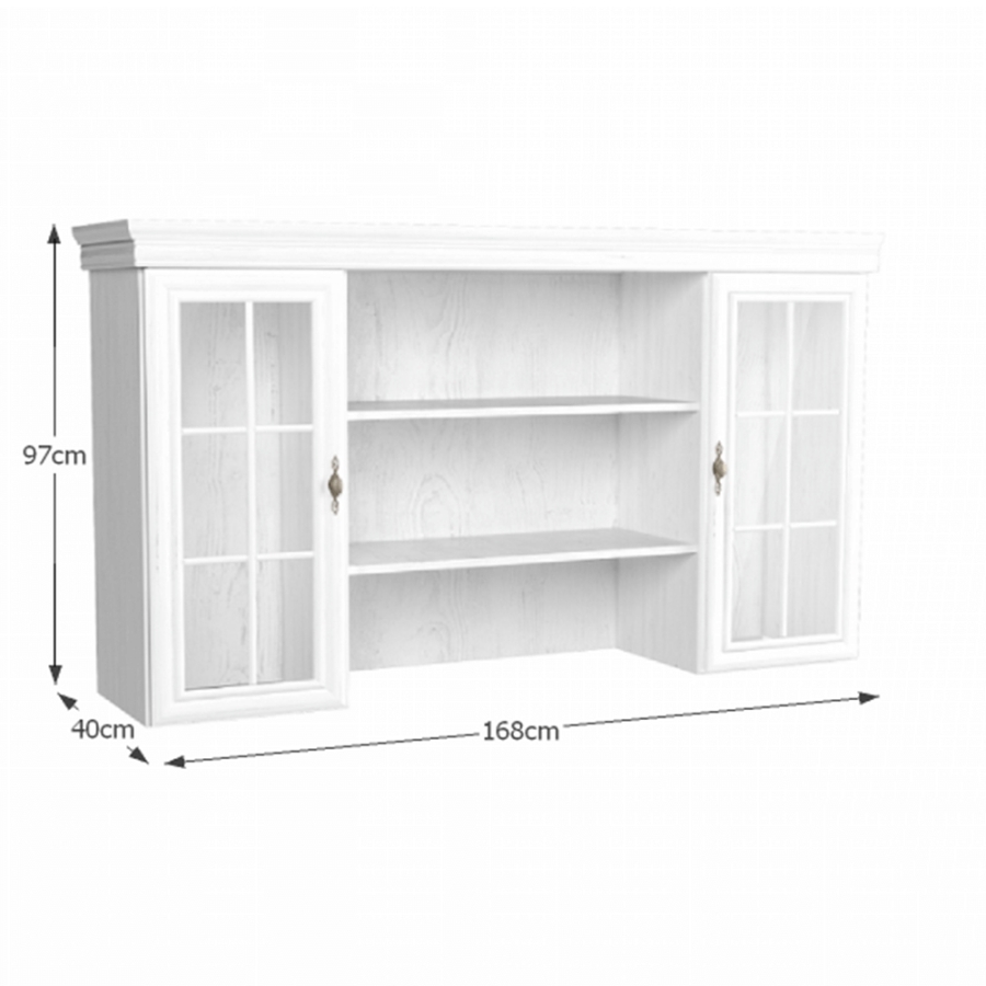 Felsőszekrény, KORA KN5 Színváltozat: andersen fenyő Anyag: laminált DTD, MDF, fém, üveg Méretek (SzéxMéxMa): 168x40x97 cm