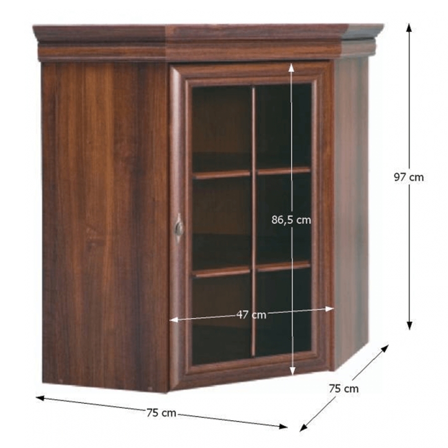 KORA KNN1 sarokvitrin üvegajtóval - ideális az ebédlő, étkező, háló vagy dolgozószoba berendezéséhez. A KORA rusztikus bútorcsaládból, könnyen kombinálható elképzelése szerint. Két ajtóval és polcokkal rendelkezik. Anyaga: laminált DTD Színváltozat: samoa king Méretek (SzéxMaxMé): 75x97x75 cm Lapraszerelten szállítva